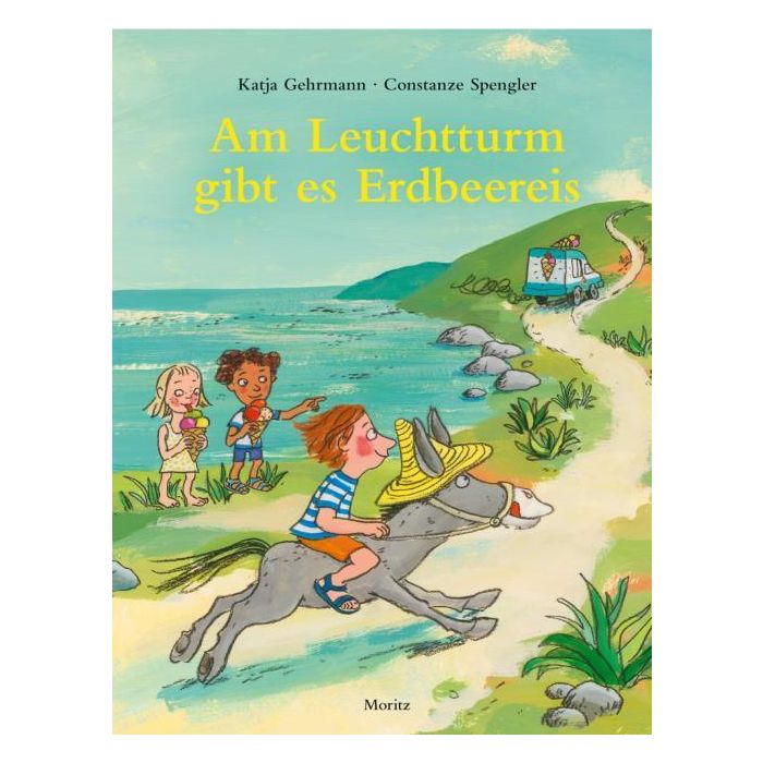 Papa und Mika machen Strandurlaub: Sonnenschirm aufbauen, baden, lesen, Federball spielen. Bis der Eiswagen klingelt. Da rennt Mika los, um Eis zu holen, wird aber aufgehalten - und da ist der Wagen auch schon wieder weg. Also nichts wie hinterher! Die Jagd nach dem Eiswagen ist eine turbulente, spannende und sehr witzige Geschichte, an der ein Esel mit gelbem Sommerhut, eine Gemüsefrau, ein Busfahrer, ein Wasserskibetreiber und eine Pilotin beteiligt sind. Katja Gehrmann zeigt uns dabei eine Urlaubsinsel, die unsere Sehnsüchte nach Urlaub weckt: mit Markt, Fähranleger, Leuchtturm - und ganz viel Eis Dieses wunderbar schräge wie sogleich pfiffige Bilderbuch erzählt eine Geschichte, die vom Abdrehen ins Absurde lebt und somit ein großer Vorlesespaß ist.