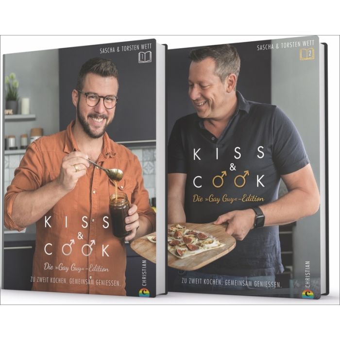 Sascha und Torsten Wett von »Die Jungs kochen und backen« liefern mit diesem Buch-Set das ultimative Kochbuch für schwule Paare. Ab sofort ist Schluss mit Krach beim Kochen und Krieg in der Küche! Denn mit diesem Kochbuch-Set kocht jeder Partner seinen Part des Gerichts, und so entstehen ganz einfach die tollsten Gerichte für jeden Anlass. Zudem ist die Gay Edition von »Kiss & Cook« das ideale Geschenk für die Wohnungseinweihung, die Verlobung oder die Hochzeit.