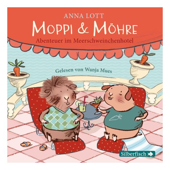 Als ihre Besitzer in den Urlaub fahren, müssen Moppi und Möhre ins Meerschweinchenhotel. Doch der Abschiedsschmerz währt nicht lange, denn das Leben hier ist herrlich: Es gibt Gurkeneis und Löwenzahnmilch mit Strohhalm, die Heubergbetten sind kuschlig weich und man kann per Rutsche gleich zum Knabberbuffet sausen. Und dann sind da noch Elvis, Schäfi, Grufti und Nacki, mit denen man richtig was erleben kann. Doch als Schäfi in den Hotelpool fällt - ohne Schwimmflügel! -, wird es Moppi und Möhre fast ein bisschen zu aufregend. Tierisch turbulente Ferienerlebnisse mit Kuschelfaktor, amüsant interpretiert von Wanja Mues.