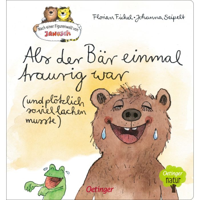 Nicht traurig sein, kleiner Bär! Der kleine Bär ist traurig. Er weiß nicht so genau, warum. Einfach traurig eben. Wie gut, dass er den kleinen Tiger an seiner Seite hat! Denn der hat immer einen guten Rat: Wer traurig ist, muss was Lustiges erleben. So ist der kleine Bär bald ein bisschen weniger traurig. Am Ende des Tages muss er sogar ganz viel lachen! Wie hat der kleine Tiger das nur gemacht? Dieses Pappbilderbuch für Kinder ab 3 Jahren erzählt eine emotionale Geschichte zum Thema Trauer und Trost, mit den beliebten Janosch-Figuren Tiger und Bär. Ein wunderbares Vorlesebuch, das zeigt: Traurig sein gehört zum Leben und Lachen ist das beste Gegenmittel! Als der Bär einmal traurig war - ein liebevolles TrostbuchEmotionales Thema: Eine berührende Geschichte zum Thema Trost und Traurigkeit für Kinder ab 3 Jahren.Liebenswerte Protagonisten: Neue Abenteuer von Tiger und Bär mit Humor und Herz erzählt von Florian Fickel.Für Janosch-Fans: Mit liebevollen Illustrationen von Johanna Seipelt - originalgetreu angelehnt an die Figurenwelt von Janosch.Geprüfte Qualität: Das Buch unterliegt strengen Sicherheitsanforderungen und regelmäßigen Kontrollen nach europäischer Spielzeugsicherheitsrichtlinie.Das wunderbare Trostbuch von Tiger und Bär erzählt mit einer großen Portion Witz eine kleine Geschichte zum Thema Traurigkeit für Kinder ab 3 Jahren. Dank des handlichen Formats eignet sich das liebevolle Pappbilderbuch perfekt zum Vorlesen oder als Gute-Nacht-Geschichte. Denn was hilft gegen traurig sein? Ein bester Freund und viel lachen!